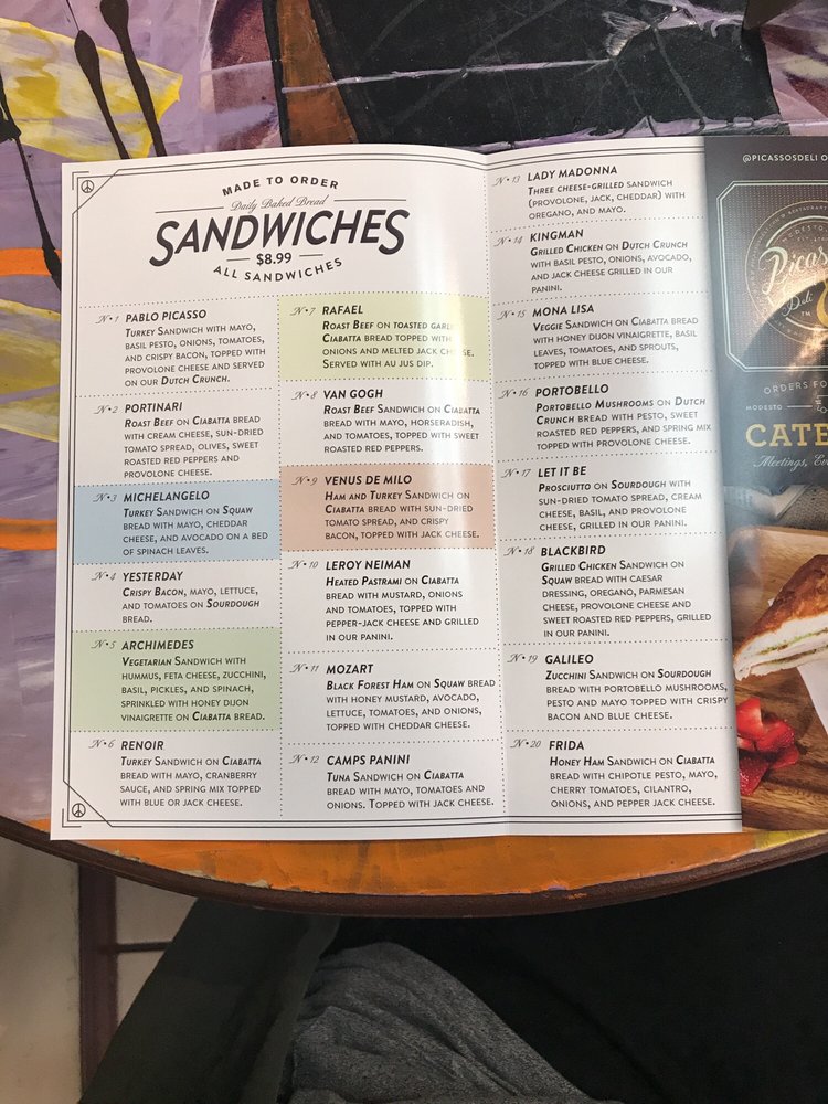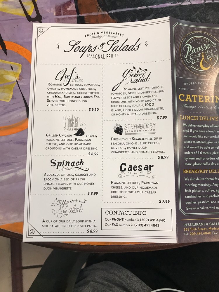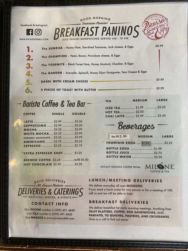 At Picassos Gourmet Deli, located in Modesto, CA, you can expect a delightful dining experience filled with Latinx-owned charm and delicious food. The menu offers a variety of options, from sandwiches like the Mona Lisa to the famous tomato basil soup that customers rave about. The family-owned atmosphere, coupled with the beautiful artwork adorning the walls, creates a welcoming ambiance for guests. The owners, Jordi and Margarita, ensure exceptional service and a menu that caters to everyone, including vegetarian and gluten-free options. With options for delivery, takeout, and catering, Picassos Gourmet Deli is the perfect spot for a quick lunch or a group gathering. Don't miss out on trying the breakfast sandwich with pesto or the FRIDA panini for a true culinary delight. With glowing reviews praising the food, service, and atmosphere, Picassos Gourmet Deli is a must-visit for food lovers in the area.